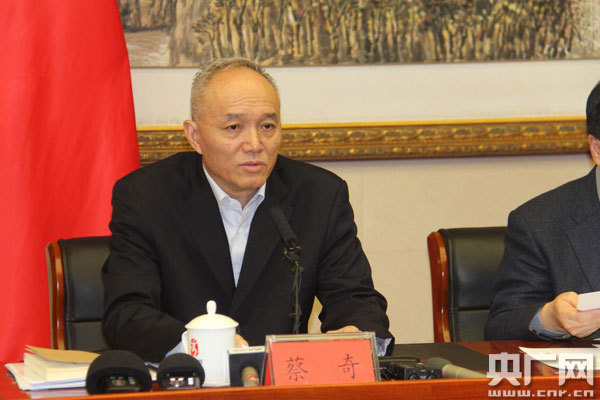 北京市長(zhǎng)蔡奇在中央媒體“京津冀協(xié)同發(fā)展調(diào)研行”專(zhuān)題座談會(huì)上發(fā)言 央廣網(wǎng)記者王晶 攝
