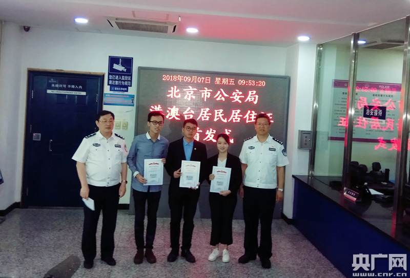 9月7日,北京市公安局向3位港澳臺(tái)居民頒發(fā)居住證。(央廣網(wǎng)記者 陳銳海 攝)