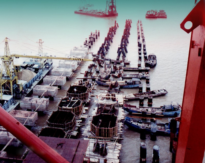 1992年12月21日,北侖20萬噸級鐵礦石中轉(zhuǎn)碼頭開工建設(shè)。(圖片由寧波舟山港股份有限公司提供)