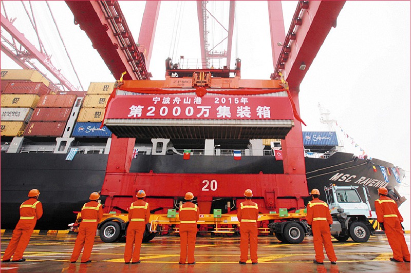 2015年12月28日,寧波舟山港集裝箱吞吐量首次突破 2000萬標(biāo)準(zhǔn)箱。(圖片由寧波舟山港股份有限公司提供)