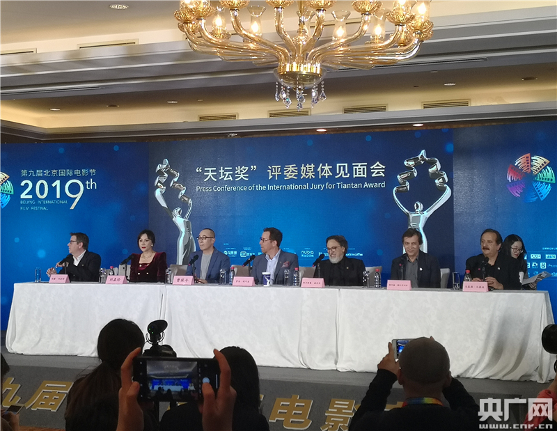 第九屆北京國際電影節(jié)主競(jìng)賽單元“天壇獎(jiǎng)”國際評(píng)委會(huì)會(huì)全體成員集體亮相。(央廣網(wǎng)記者 劉一荻 攝)