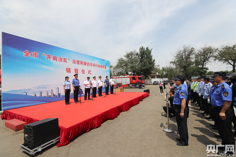 “黑摩的”專項行動減存量銷毀儀式。(央廣網(wǎng)記者 韓靖 攝)