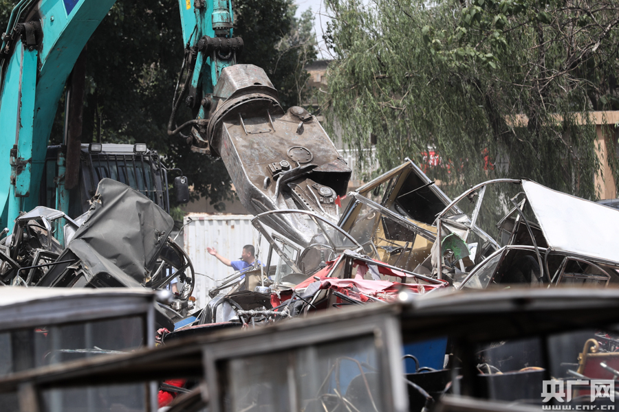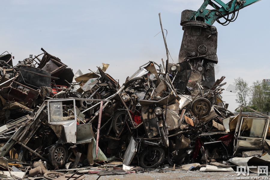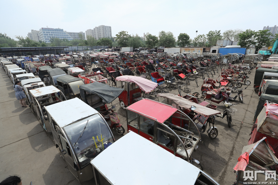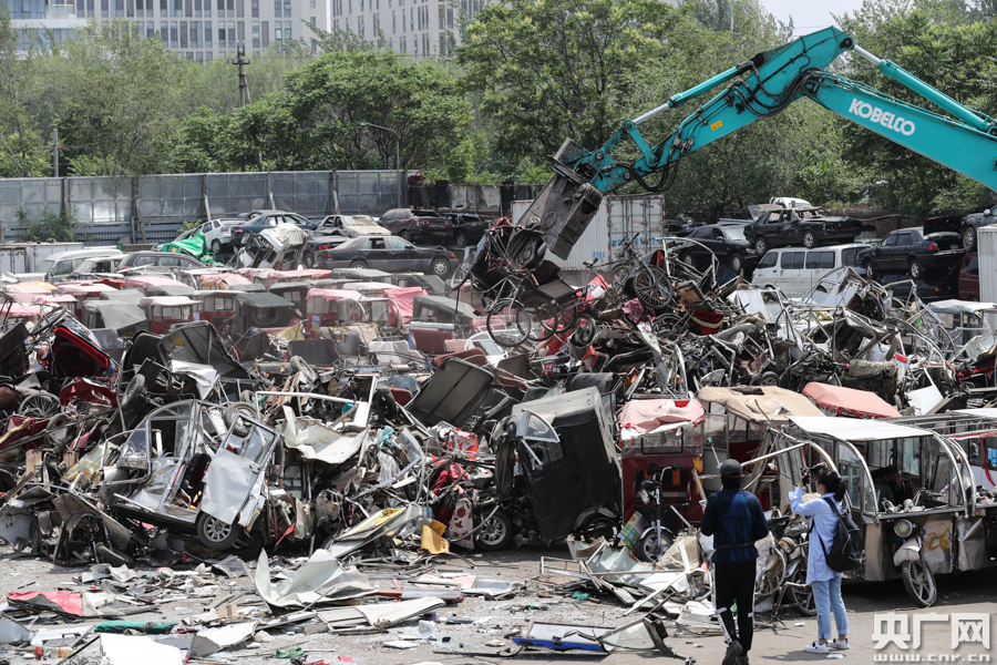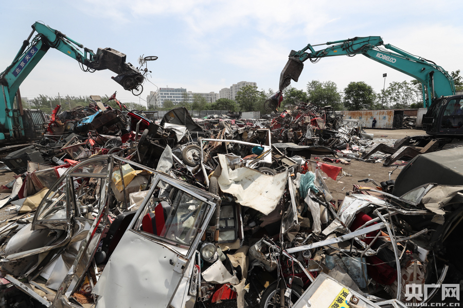“黑摩的”銷毀現(xiàn)場。(央廣網(wǎng)記者 韓靖 攝)