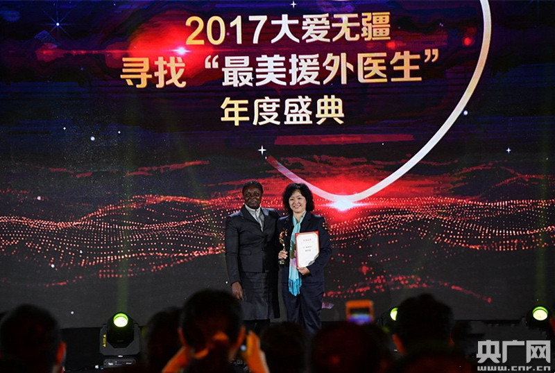 2017年,由中國人民對外友好協(xié)會與國家衛(wèi)生與計劃生育委員會等聯(lián)合主辦的“大愛無疆——尋找最美援外醫(yī)生”公益活動年度盛典于11月9日在北京舉辦,因她與團隊“正在改變西非心臟病防治歷史”,以及申請成立“中加西非心臟合作項目”,林純瑩被評為“最美援外醫(yī)生”。(受訪者供圖 央廣網(wǎng)發(fā))
