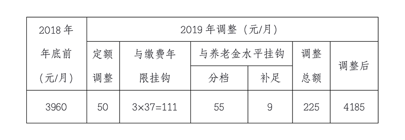 據(jù)介紹,2019年繼續(xù)實(shí)行與繳費(fèi)年限掛鉤普遍增加基本養(yǎng)老金的辦法。其中,繳費(fèi)年限滿10年及以上的退休人員,繳費(fèi)年限每滿1年,每月增加3元;對(duì)于不足整年的月數(shù),每月增加0.25元;繳費(fèi)年限不滿10年的(不含建設(shè)征地農(nóng)轉(zhuǎn)工退休人員),每人每月增加30元;繳費(fèi)年限不滿15年的建設(shè)征地農(nóng)轉(zhuǎn)工退休人員,每人每月增加45元。