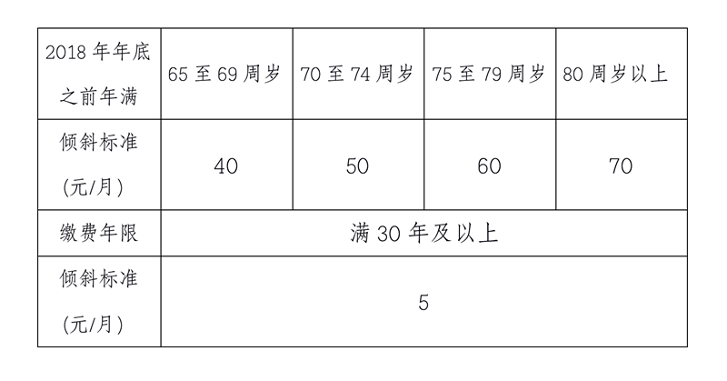 為了進(jìn)一步提高部分群體的基本生活水平,自2007年起,北京市針對(duì)退休時(shí)間早、年齡偏大的退休人員,在調(diào)整企業(yè)退休人員基本養(yǎng)老金時(shí)給予適度傾斜。2019年繼續(xù)堅(jiān)持這一做法,對(duì)在2018年底之前已經(jīng)年滿65周歲及以上的高齡退休人員,在按照上述基本養(yǎng)老金調(diào)整辦法進(jìn)行調(diào)整后,再次享受到40元至70元四個(gè)檔次的傾斜政策,即65至69周歲的退休人員每人每月再增加40元;70至74周歲每人每月再增加50元;75至79周歲每人每月再增加60元;80周歲以上每人每月再增加70元。