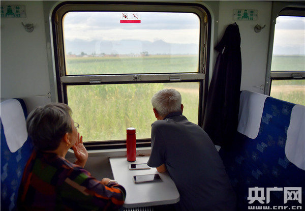 因為沒有站臺,彼時列車每到一個站點,他們都要在車廂門口放好木梯,遇夜晚,還得提著馬燈照亮乘客腳下的路。“你看,車外環(huán)境變化更大!鞭D(zhuǎn)過身來,與洪靜云同行的劉玉霞接話道,7524次運行的線路由于地處賀蘭山與烏蘭布和沙漠交界處,所以當年從大武口站開始,鐵路兩旁就布滿了連綿的沙地。“風吹沙石跑,遍地不長草。這是我們當年形容沿途‘風光’的順口溜!眲⒂裣颊f,當時是蒸汽機車,加上外面沙塵大,列車窗戶常是黑的。經(jīng)過隧道時,臉還會被煙氣熏黑。