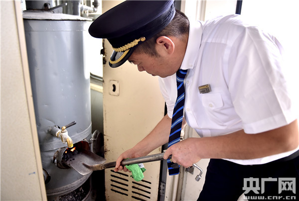 列車員正在為鍋爐添煤(央廣網(wǎng)記者 王晶 攝)