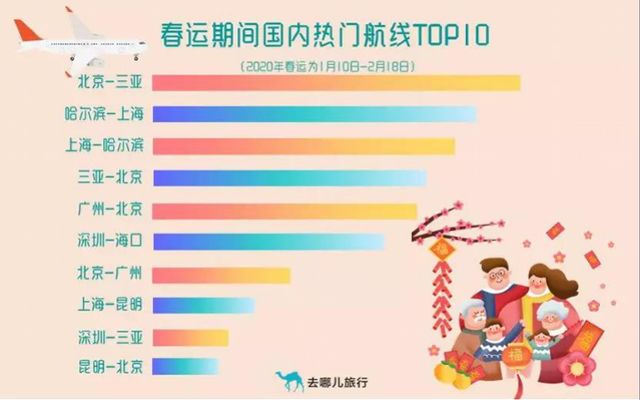 春運期間國內(nèi)熱門航線TOP10(央廣網(wǎng)發(fā) 去哪兒網(wǎng)供圖)