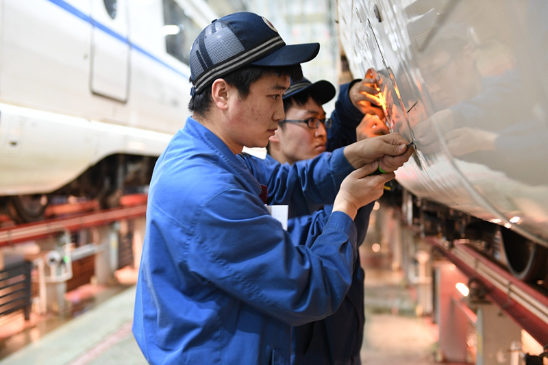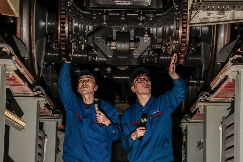 高鐵檢修師精心檢修動(dòng)車(chē)組列車(chē)(央廣網(wǎng)發(fā) 沈陽(yáng)鐵路供圖)
