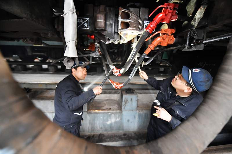 從2019年12月起對(duì)全部支南列車(chē)進(jìn)行細(xì)致整備。在車(chē)輛整修中首次在對(duì)全列車(chē)輪輞打磨除銹后,使用便攜式探傷儀探傷檢查并對(duì)制動(dòng)管活接進(jìn)行全部緊固處理,使用“超聲波側(cè)漏儀”配合“測(cè)漏液”對(duì)客車(chē)制動(dòng)管系活接進(jìn)行全面查漏,消除漏泄部位(央廣網(wǎng)發(fā) 沈陽(yáng)鐵路供圖)