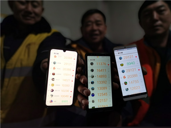 圖為通化工務(wù)段白山橋隧車間職工打冰作業(yè)完畢后曬微信步數(shù)(沈陽鐵路供圖)