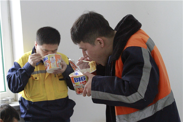 吉林電務(wù)段白河信號(hào)工區(qū)一天道岔檢修清雪結(jié)束,他們馬上測(cè)試軌道絕緣,簡單休整吃了一碗方便面后,又將匆忙列隊(duì)趕往另一側(cè)站點(diǎn)繼續(xù)清雪、測(cè)試。