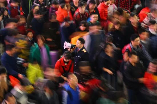 作為全國人流量最為密集的火車站之一,春運(yùn)期間廣州站人流如織。即使在科技暢行的當(dāng)下,仍需人為引導(dǎo)客流。