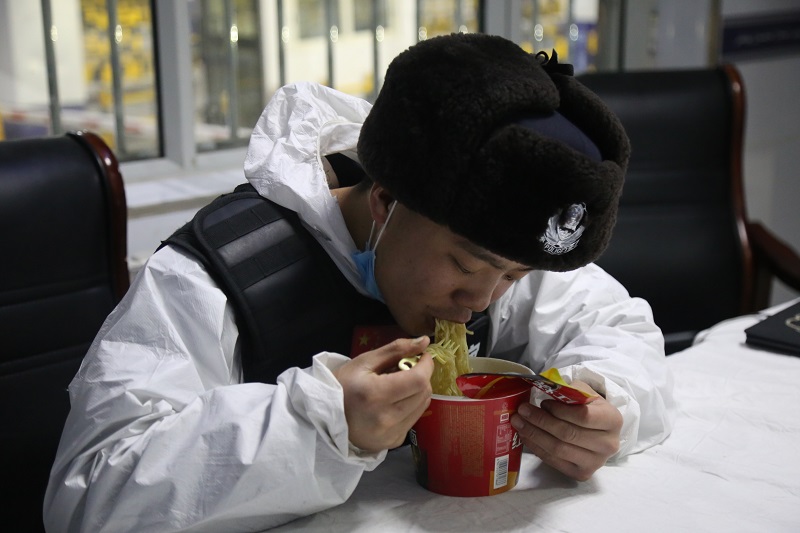 夜間執(zhí)勤結(jié)束,簡單充饑(受訪者供圖)