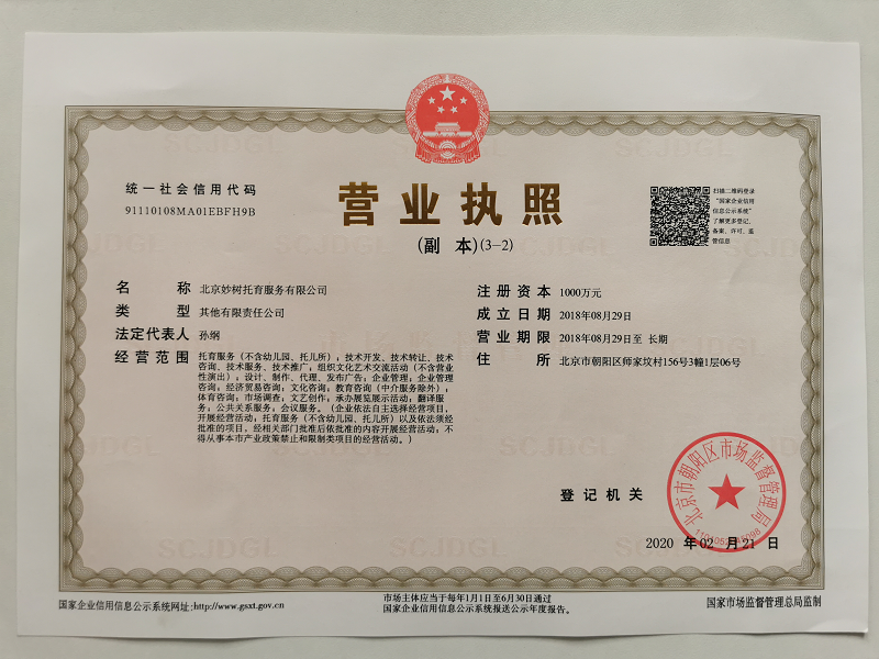 北京市第一家托育機(jī)構(gòu)營(yíng)業(yè)執(zhí)照(央廣網(wǎng)發(fā) 妙樹托育中心供圖)