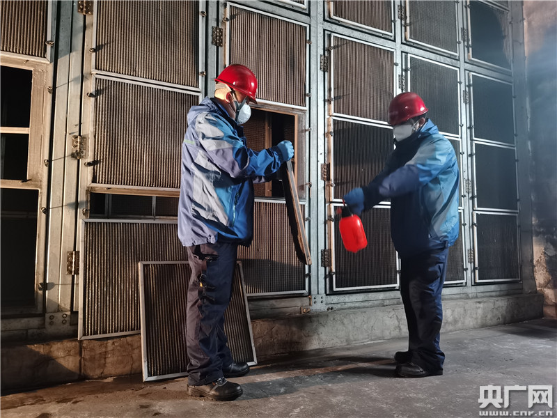 地鐵工作人員正在對(duì)通風(fēng)室的過(guò)濾網(wǎng)進(jìn)行消毒(央廣網(wǎng)記者 劉一荻 攝)