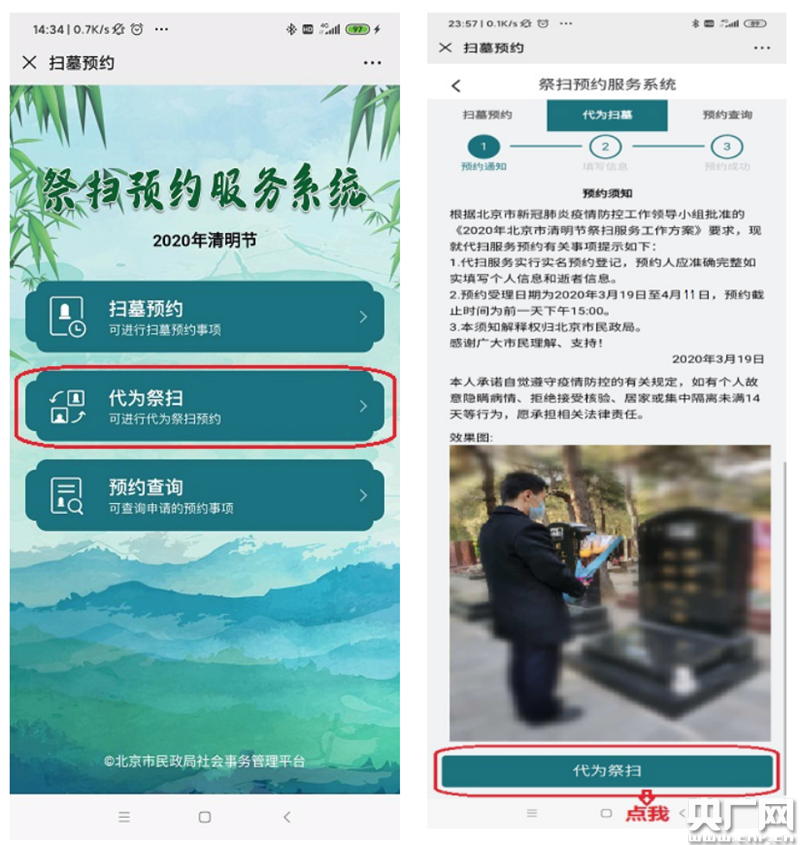 2、代為祭掃。關(guān)注“北京社會建設(shè)和民政”微信公眾號進行代為祭掃預(yù)約。