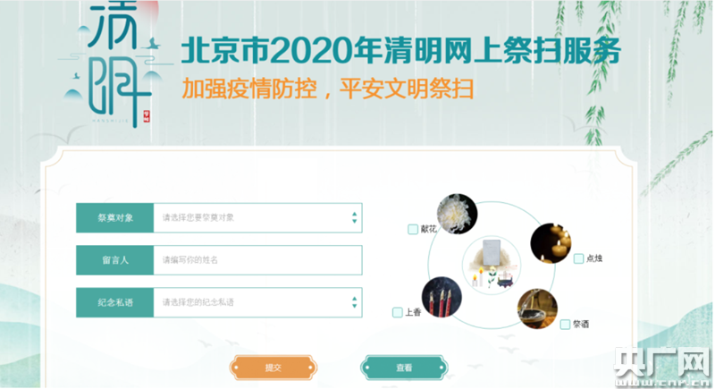 3、網(wǎng)上祭掃。登錄“首都之窗”“北京市民政局”及各區(qū)人民政府官方網(wǎng)站,點擊“2020年清明節(jié)網(wǎng)上祭掃服務(wù)”進行網(wǎng)上祭掃。