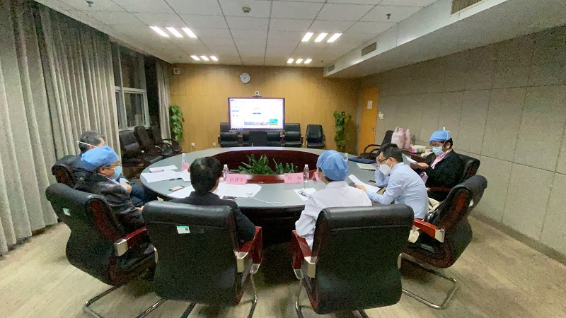 3月26日,華中科技大學(xué)同濟醫(yī)學(xué)院附屬同濟醫(yī)院6位專家與美國進(jìn)行了視頻連線,圖為連線現(xiàn)場(同濟醫(yī)院供圖)