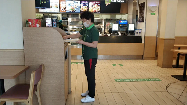 自3月15日起,每天早上七點半,山西省長治市潞城區(qū)西街社區(qū)居民張愛霞都會提前到崗,戴上口罩和手套,抹桌子、拖地、擦玻璃,對其所工作的快餐店進(jìn)行清洗和消毒,一切進(jìn)行地有條不紊。