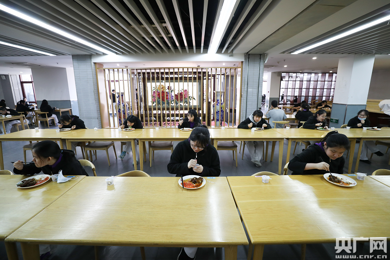 4月27日中午,北京市第三十五中學(xué)學(xué)生分散就餐(央廣網(wǎng)記者 韓靖 攝)
