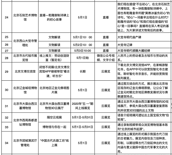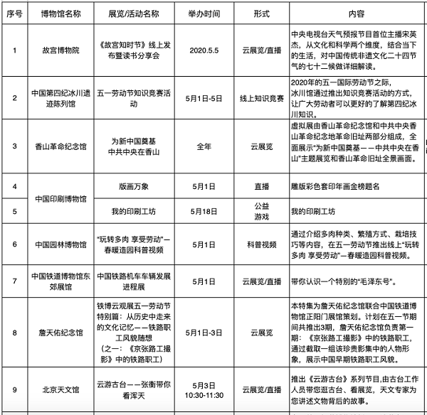 附:“五一”勞動(dòng)節(jié)期間北京地區(qū)博物館線上展覽活動(dòng)清單