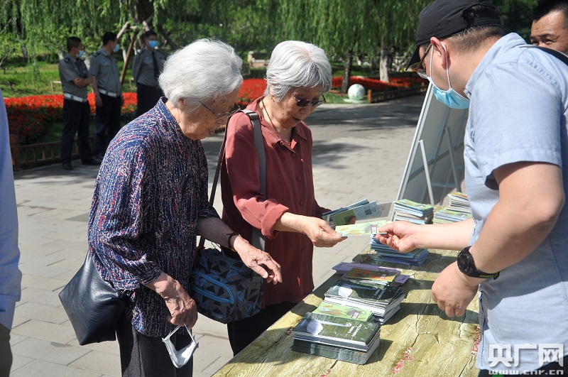 此次京版《條例》把禁食范圍從國(guó)家重點(diǎn)保護(hù)野生動(dòng)物拓展到了本市重點(diǎn)保護(hù)和其他陸生野生動(dòng)物,極大地?cái)U(kuò)展了法規(guī)的適用范圍。圖為游客領(lǐng)取野生動(dòng)物保護(hù)宣傳資料(央廣網(wǎng)記者 王子衿 攝)