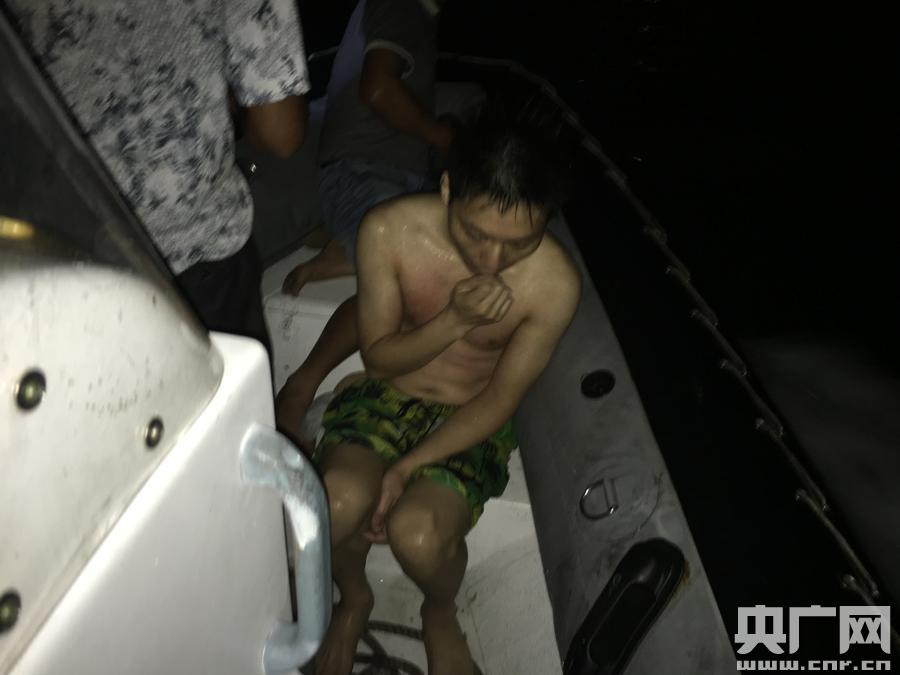 福建海警二支隊今晨成功救起1名落水群眾(央廣網(wǎng)發(fā) 游訓(xùn)利 李晨攝) 據(jù)悉,被救村民張某楠,系泉州臺商投資區(qū)秀涂村村民,14日下午天氣炎熱,于是只身驅(qū)車前往秀涂海域的淺灘踏浪泡澡。20時許,他走到深水區(qū),玩得正起勁,沒注意潮水上漲,危險正悄悄臨近。剛才身后的沙灘已完全被海水覆蓋,張某楠想回到岸邊,卻被一個大浪卷走。由于不會游泳,只能拼命在水中掙扎,歷盡千辛才抓到一個漁網(wǎng)浮球,幸好被海警官兵趕到救起。 -