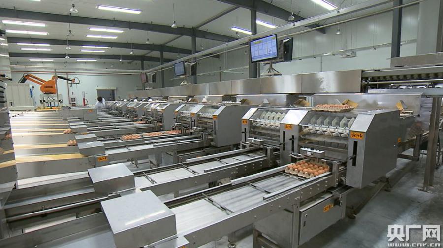 探訪點一:正大300萬羽蛋雞養(yǎng)殖項目一期 正大300萬羽蛋雞養(yǎng)殖項目一期是慈溪市現(xiàn)代農(nóng)業(yè)產(chǎn)業(yè)園區(qū)的一大重要板塊。一期項目投資2.26億元,養(yǎng)殖規(guī)模100萬羽,是目前華東地區(qū)設備最先進、規(guī)模最大的蛋雞養(yǎng)殖項目。正大羽蛋雞養(yǎng)殖項目產(chǎn)量高,人工少,真正做到現(xiàn)代農(nóng)業(yè)的“機器換人”。 在慈溪正大蛋業(yè)有限公司,員工早上八點上班后,啟動全自動智能生產(chǎn)設備,從雞蛋的收集、沖洗到消毒、包裝等過程都依靠機器完成,只有在最后的挑選次品和物流環(huán)節(jié)需要人工操作。這便是該公司智能車間的工作情況,日產(chǎn)雞蛋達48萬枚,而員工卻只有20余人。 “我們的雞蛋從采集、挑選到?jīng)_洗、包裝,都是全自動的生產(chǎn)線。我們的設備會定時將雞舍里的雞蛋進行收集,通過傳送機器輸送到挑選生產(chǎn)線上,在挑選時,過大、過小和破損雞蛋會被選出,有污垢黏著的雞蛋會被噴霧清洗,最終選出合格雞蛋。數(shù)萬枚雞蛋的生產(chǎn)線只需要幾名員工就可以實現(xiàn)了!贝认蟮皹I(yè)有限公司負責人顧文榮介紹說。 -