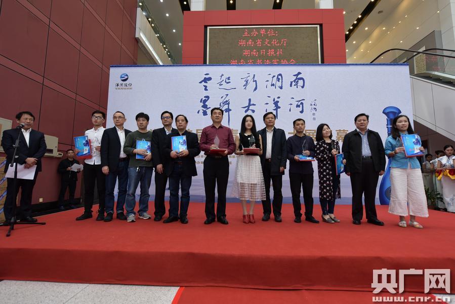 央廣網(wǎng)長沙4月28日消息(記者傅蕾 通訊員劉燦輝)4月28日,“云起新湖南 墨舞大洋河”---湖南首屆中青年書法大展開幕式在湖南省文化館舉行,并對(duì)28位優(yōu)秀作品的獲得者現(xiàn)場頒獎(jiǎng)。自此,這場備受矚目和期待的書法展正式拉開帷幕。 -