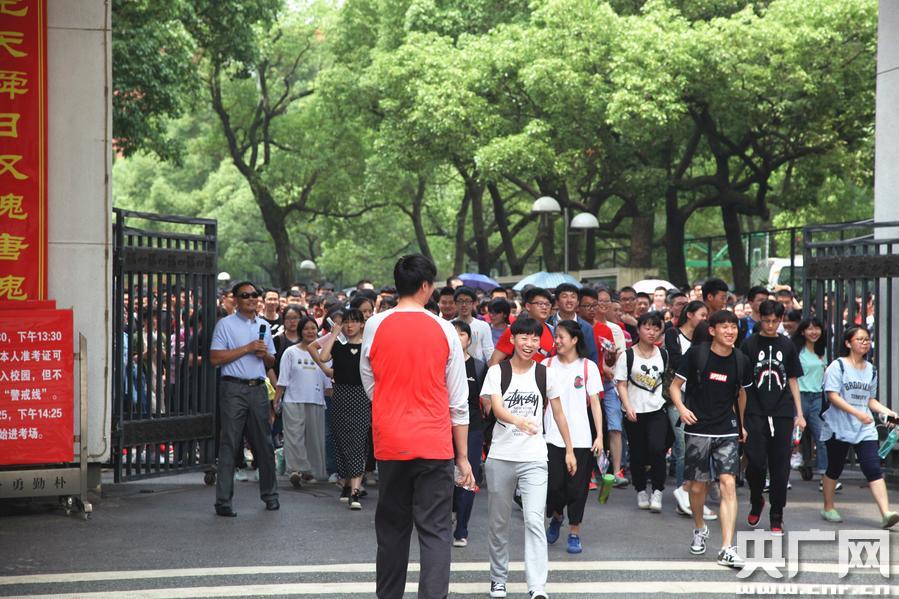 第一場(chǎng)語(yǔ)文考試結(jié)束后考生走出長(zhǎng)沙市第一中學(xué)考點(diǎn)