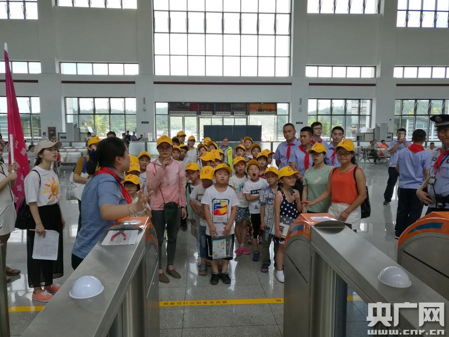 凱里車(chē)務(wù)段邀請(qǐng)留守兒童“領(lǐng)略高鐵文化”(央廣網(wǎng)發(fā) 龍幸攝) 央廣網(wǎng)重慶7月21日消息(記者劉湛 通訊員彭亮 龍幸)7月19日,凱里車(chē)務(wù)段三穗站聯(lián)合常春藤快樂(lè)兒童之家、三穗站線(xiàn)路車(chē)間舉辦主題為“領(lǐng)略高鐵文化、熟知乘車(chē)安全”的拓展活動(dòng),組織35名留守兒童及10名大學(xué)生志愿者走進(jìn)高鐵車(chē)站,實(shí)地觀摩中國(guó)高鐵的發(fā)展,開(kāi)拓留守兒童與大學(xué)生志愿者的文化視野。 -