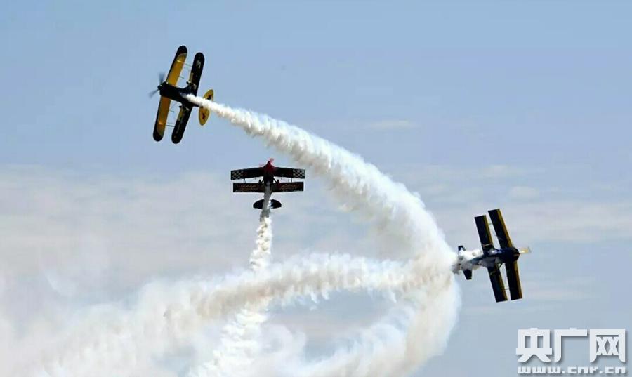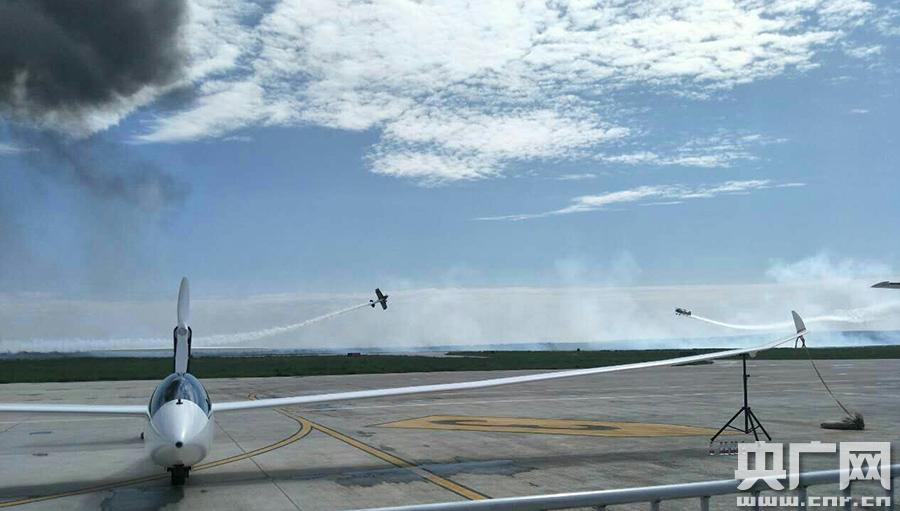 啟幕(央廣網(wǎng)記者 廉軍 攝) 央廣網(wǎng)銀川8月5日消息(記者廉軍 通訊員世鋒)“多彩鹽池·飛行盛宴——2017翼揚(yáng)航空嘉年華”活動(dòng)4日在寧夏鹽池縣通用機(jī)場盛大啟幕,3天中來自美國、瑞典、西班牙的3支表演隊(duì)和一批世界頂級(jí)飛行員將表演30余場精彩的飛行節(jié)目。 當(dāng)天西班牙卡斯特“蘇26”+美國斯蓋普“匹茲”模擬空戰(zhàn)煙火秀特技飛行表演、瑞典天貓“機(jī)翼行走”的特技飛行表演、瑞典維京單機(jī)特技飛行表演、大黃蜂單機(jī)特技飛行表演、高空跳傘花樣表演,給現(xiàn)場觀眾獻(xiàn)上了一份震撼的視覺盛宴。特邀世界特技飛行冠軍、歐洲冠軍、美國總冠軍等一批世界頂級(jí)飛行員完成相應(yīng)特技飛行科目,邀請美國好萊塢特技閃爆特技組完成一系列的模擬空戰(zhàn)場景。 據(jù)了解,鹽池縣搶抓低空經(jīng)濟(jì)和通航產(chǎn)業(yè)快速發(fā)展的重大機(jī)遇,充分發(fā)揮獨(dú)特的航空資源優(yōu)勢,全力打造全國通航跳傘運(yùn)動(dòng)基地、中國航空體育特色縣,通過舉辦系列節(jié)會(huì)和賽事,使老區(qū)鹽池的對外影響力和知名度得到極大提升,文化旅游產(chǎn)業(yè)實(shí)現(xiàn)了快速發(fā)展。 據(jù)介紹,今年的航空嘉年華是鹽池縣舉辦全國跳傘錦標(biāo)賽、全國定點(diǎn)跳傘大獎(jiǎng)賽后又一次航空文化盛典,有美國、立陶宛的優(yōu)秀飛行隊(duì)表演航空特技,舉辦全國青少年航模大賽和全國模擬飛行優(yōu)秀選手賽,設(shè)置了各類游客互動(dòng)飛行娛樂體驗(yàn)項(xiàng)目,還穿插舉辦嘉年華音樂節(jié)和鹽池特色美食節(jié)系列活動(dòng)。是寧夏近年來規(guī)模最大、內(nèi)容最豐富、氣勢最宏大的航空表演盛會(huì),更是 一次普及航空知識(shí)、展示鹽池文化、寓教于樂的大眾航空狂歡節(jié)。 鹽池縣長戴培吉在開幕致辭中說,隨著我國低空空域管理改革的深入實(shí)施,通航產(chǎn)業(yè)已成為普及航空文化知識(shí)、強(qiáng)化國民航空意識(shí)、推動(dòng)區(qū)域經(jīng)濟(jì)發(fā)展的新動(dòng)能、新引擎。鹽池縣舉辦航空嘉年華活動(dòng)對加快通航產(chǎn)業(yè)和文化旅游融合發(fā)展,推進(jìn)經(jīng)濟(jì)綠色發(fā)展和產(chǎn)業(yè)轉(zhuǎn)型升級(jí),都具有重要意義。