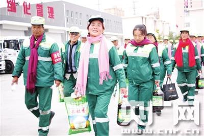 環(huán)衛(wèi)工人節(jié) 央廣網(wǎng)銀川10月26日消息(記者廉軍)今天是銀川市第十二個“環(huán)衛(wèi)工人節(jié)”,為了讓環(huán)衛(wèi)工人體面勞動創(chuàng)造更加良好的社會環(huán)境,銀川市向環(huán)衛(wèi)工人普發(fā)慰問金,開展慰問、表彰、文藝匯演、趣味運動會等慶;顒。 據(jù)介紹,每年的環(huán)衛(wèi)工人節(jié),銀川市的環(huán)衛(wèi)工人全部休息一天,由各個機關(guān)單位的工作人員充當環(huán)衛(wèi)工上街清掃衛(wèi)生,保障市容環(huán)境的干凈整潔。興慶區(qū)環(huán)衛(wèi)中心組織環(huán)衛(wèi)工人參觀游覽銀川市花博園,西夏區(qū)舉辦“十佳環(huán)衛(wèi)工人”、“二十名先進工作者”頒獎。 一些社會單位和企業(yè)紛紛向環(huán)衛(wèi)工人獻愛心發(fā)福利,有為環(huán)衛(wèi)工人免費理發(fā)美容的,有發(fā)生活日用品的,袁老四重慶火鍋今天中午免費請2000多環(huán)衛(wèi)工人吃火鍋聚餐,企業(yè)負責(zé)人表示,每年的這個時候我們都會請環(huán)衛(wèi)工人吃熱氣騰騰的火鍋,感謝他們?yōu)槌鞘协h(huán)境作出的貢獻。 據(jù)了解,銀川市為符合條件的1900多名一線環(huán)衛(wèi)工人全部辦理了養(yǎng)老、醫(yī)療、失業(yè)、生育和意外傷害保險,不符合“五險”條件的統(tǒng)一購買了意外傷害保險,做到了人人有保障,已有771戶一線環(huán)衛(wèi)工人住進了廉租房。 銀川市從2015年開始共投資1.8億元,購置新型洗掃車、干掃車、高壓沖洗車、霧炮車等370余臺(套),降低了環(huán)衛(wèi)工人勞動強度,提高了環(huán)衛(wèi)作業(yè)的機械化和精細化水平,實現(xiàn)了道路保潔長效管理。 環(huán)衛(wèi)工人王淑萍今天開心地說,我從事環(huán)衛(wèi)工作已經(jīng)10多年了,這幾年來我們的工作環(huán)境、收入待遇越來越好,吃上了免費早餐,住上了保障性住房。我建議加大對車窗拋物、隨意亂扔垃圾等不文明行為的處罰,讓銀川市容衛(wèi)生更干凈。