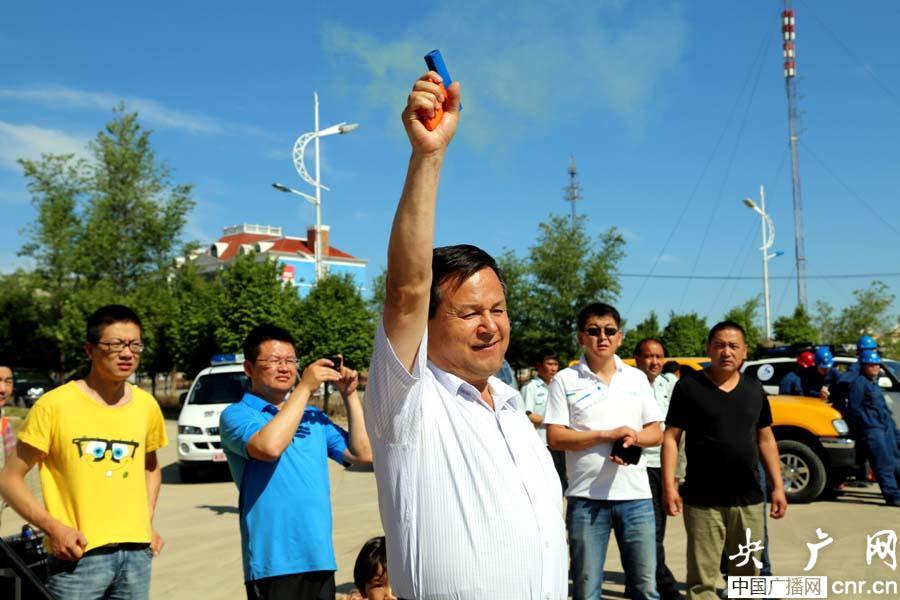 新疆阿拉山口市市長(zhǎng)尤力瓦斯·巴吐爾鳴槍發(fā)令(央廣網(wǎng)記者 張雷 攝)