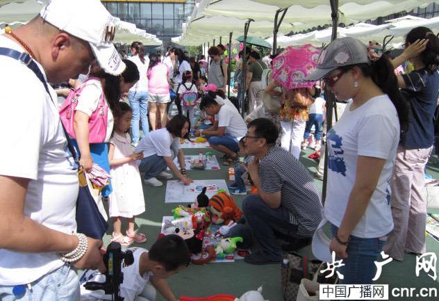 孩子們和家長進行愛心集市交易(央廣網(wǎng)記者 廉軍 攝)