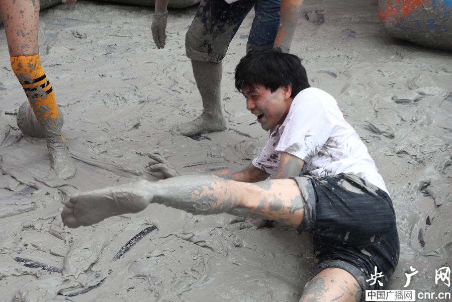 比賽是在泥漿中進(jìn)行,所以參與人員無需太多技巧(央廣網(wǎng)記者 何偉奇 攝)