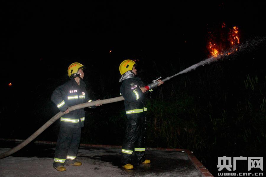 梧州市消防支隊連夜投入滅火。(央廣網(wǎng)發(fā) 雷開偉 攝)