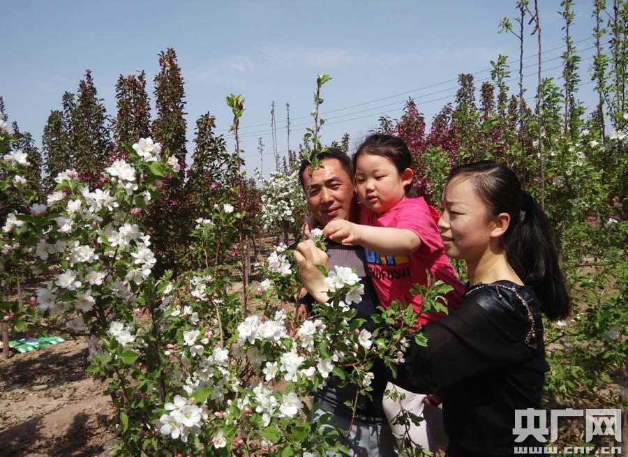游客在千畝海棠花園里合影留念(央廣網(wǎng)記者 吳卓勝 攝)