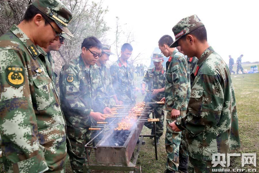 昨天(20日)清晨,官兵們一同乘車來到6公里外的提孜拉甫鄉(xiāng),在沙棘成林、鮮花盛開、小河流水的草地上“安營扎寨”。