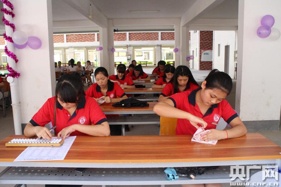 學(xué)生們進(jìn)行點鈔表演(央廣網(wǎng)發(fā) 通訊員莫惘 唐曉慧 攝)