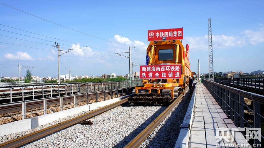 央廣網(wǎng)?6月30日消息(記者許云 吳媚苗)6月30號(hào)下午18時(shí)整,伴隨著鋪軌車作業(yè)的轟隆聲,鐵路工人們將海南西環(huán)鐵路上最后一根長(zhǎng)鋼軌在?诨疖囌靖浇佅。至此,正線全長(zhǎng)345公里的海南西環(huán)鐵路正式完成鋪軌。“新建海南西環(huán)鐵路鋪軌工程全線雙線鋪通!”——廣鐵集團(tuán)?诠こ探ㄔO(shè)指揮部副指揮長(zhǎng)林鎮(zhèn)洪用響亮的聲音宣布道。