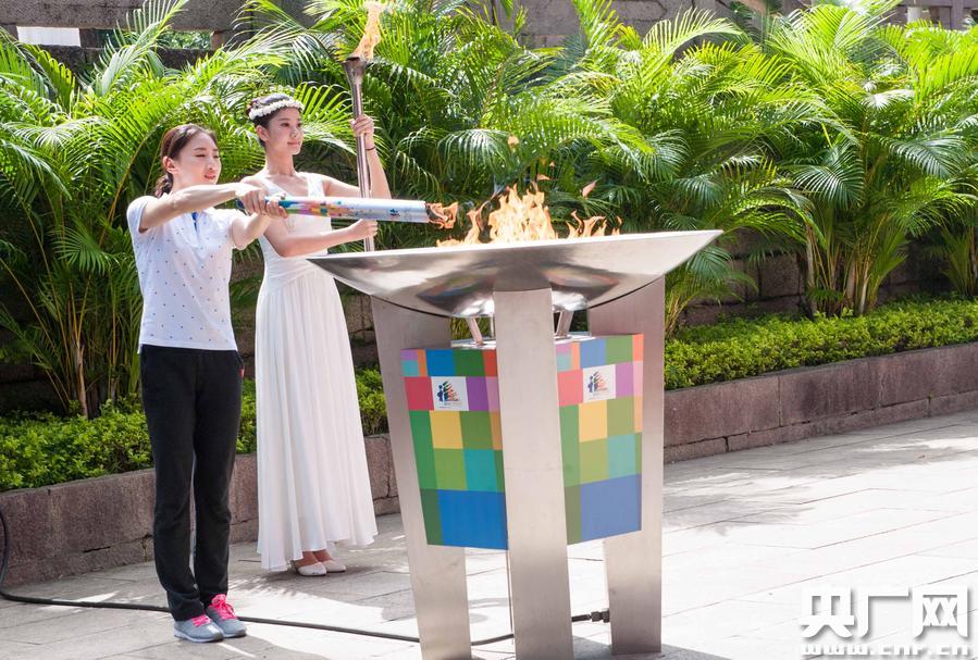 閩籍奧運(yùn)冠軍何雯娜入場(chǎng),她手舉火炬上前,伸入圣火盆中,點(diǎn)燃了火炬,并向四周展示。場(chǎng)內(nèi)的LED大屏開始播放青運(yùn)會(huì)火炬?zhèn)鬟f視頻,視頻中萌萌的青運(yùn)會(huì)吉祥物“榕榕”手持火炬對(duì)觀眾表達(dá)著等待冠軍大哥哥或大姐姐來點(diǎn)燃火炬的期待和激動(dòng)心情,并伸出火炬,等待點(diǎn)燃。何雯娜來到LED大屏前,將火炬伸向屏幕方向,瞬間,屏幕上榕榕手中的火炬燃燒起來了,榕榕高舉火炬準(zhǔn)備開始在全國(guó)火炬?zhèn)鬟f的旅程。自此,持續(xù)3個(gè)月的全國(guó)火炬網(wǎng)絡(luò)傳遞在福州啟動(dòng)。