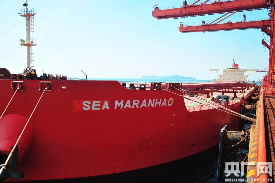 40萬(wàn)噸“海上巨無(wú)霸”滿(mǎn)載靠泊大連港 接卸超大型鐵礦石船成為新常態(tài)(于海青攝)