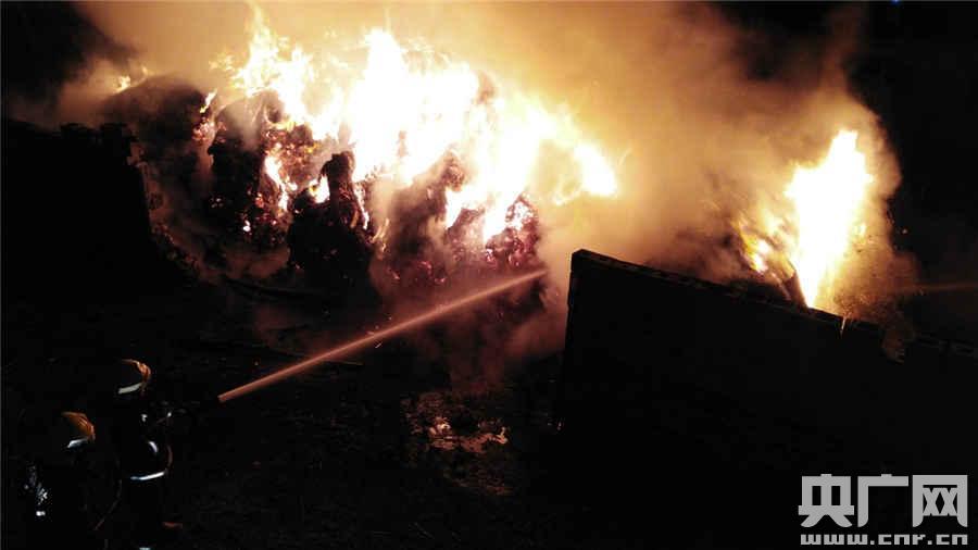 新疆阿勒泰3天近百噸牧草被燒毀 消防緊急處置(央廣網(wǎng)記者 張雷 攝)