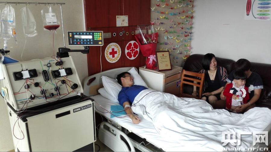 慈溪市紅十字會(huì)副秘書長(zhǎng)胡峻箐在浙江省中醫(yī)院進(jìn)行造血干細(xì)胞采集