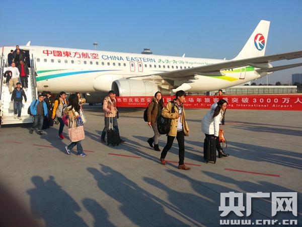 央廣網(wǎng)西安11月27日消息(記者劉濤2)11月27日上午9時35分,從上海飛來的MU2335航班穩(wěn)穩(wěn)降落在西安咸陽國際機(jī)場(以下簡稱“咸陽機(jī)場”),機(jī)上的旅客張偉幸運地成為咸陽機(jī)場今年的第3000萬名旅客,至此,咸陽機(jī)場成為國內(nèi)第八家年旅客吞吐量突破3000萬人次機(jī)場,一舉躍入“全球繁忙機(jī)場”行列。