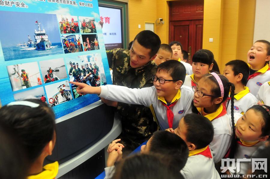 央廣網(wǎng)福州12月25日消息(記者葛朝興 通訊員沈燦煌)12月24日,福建海警一支隊(duì)組織官兵到福州市亭江中心小學(xué),為六年級學(xué)生上了一堂生動的國防教育課。海警官兵用通俗易懂的語言,向?qū)W生們介紹了組織學(xué)生們觀看海警部隊(duì)執(zhí)勤執(zhí)法照片以及艦艇模型,介紹了海警官兵的日常工作生活情況,以及海警部隊(duì)的歷史沿革、職責(zé)使命等,并講述了馬江海戰(zhàn)歷史以及我國領(lǐng)海概況和當(dāng)前海防形勢,教育引導(dǎo)學(xué)生們要銘記歷史,關(guān)心海防,增強(qiáng)愛國情懷。