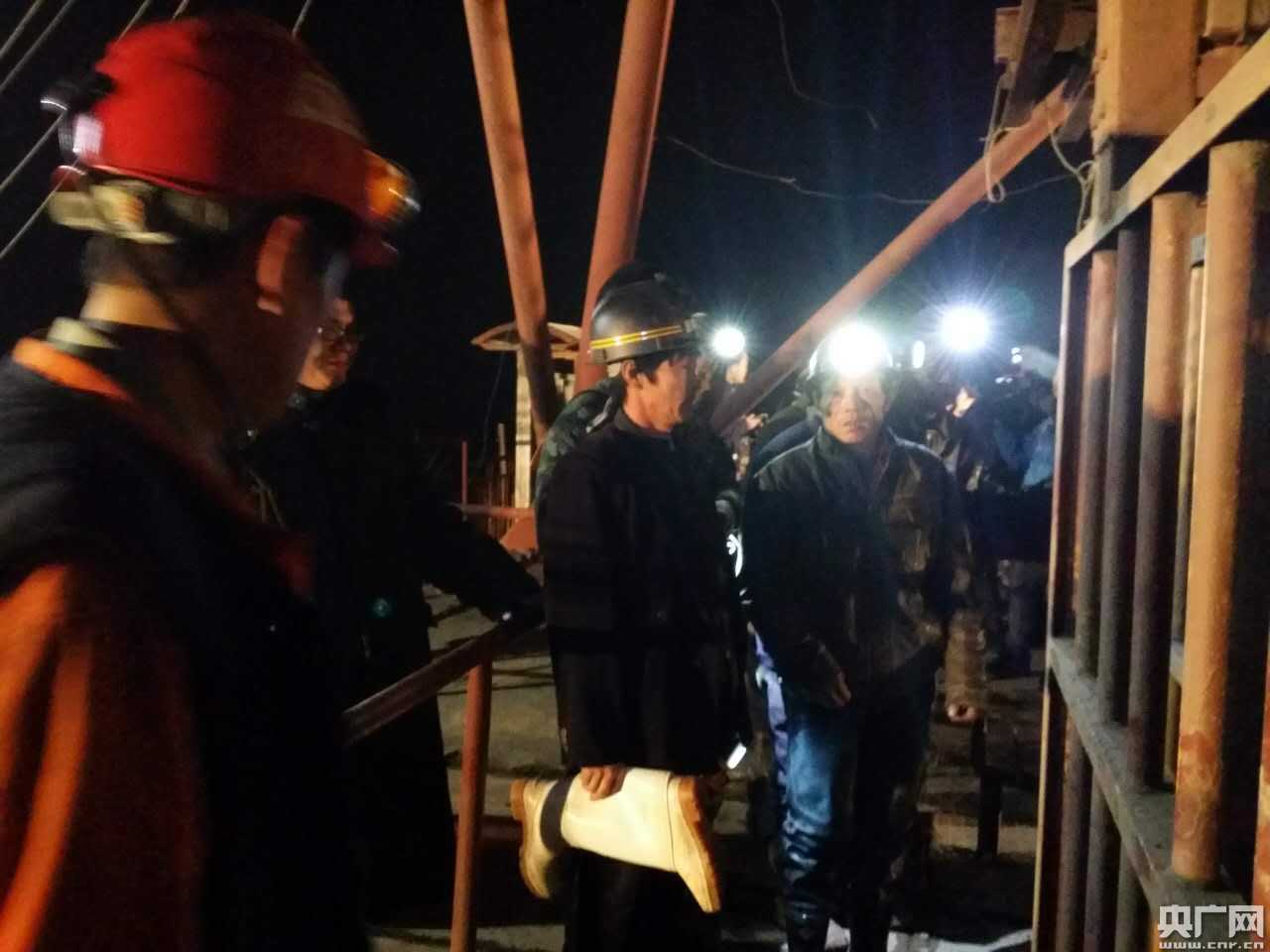 18點(diǎn)30分許,救援現(xiàn)場發(fā)現(xiàn)首批6名被困工人,救援人員準(zhǔn)備下井營救。